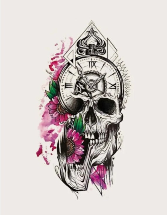 Temporary Tattoos Goth Skull Arm Length Tattoo Grunge Etsy